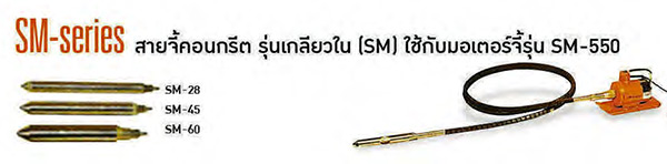 สายจี้คอนกรีต แบบเกลียวใน 28, 45, 60 มม MIKASA รุ่น SM- Japan ขนาดหัวจี้ 28, 45, 60 มม. ความยาวสาย 4 เมตร , 5 เมตร อัตราการสั่น 150 - 208 Hz.