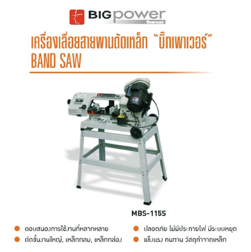 รายละเอียด แท่นเลื่อยสายพานตัดเหล็กหนา 110 มม. 1/2 HP BigPower MBS-115S